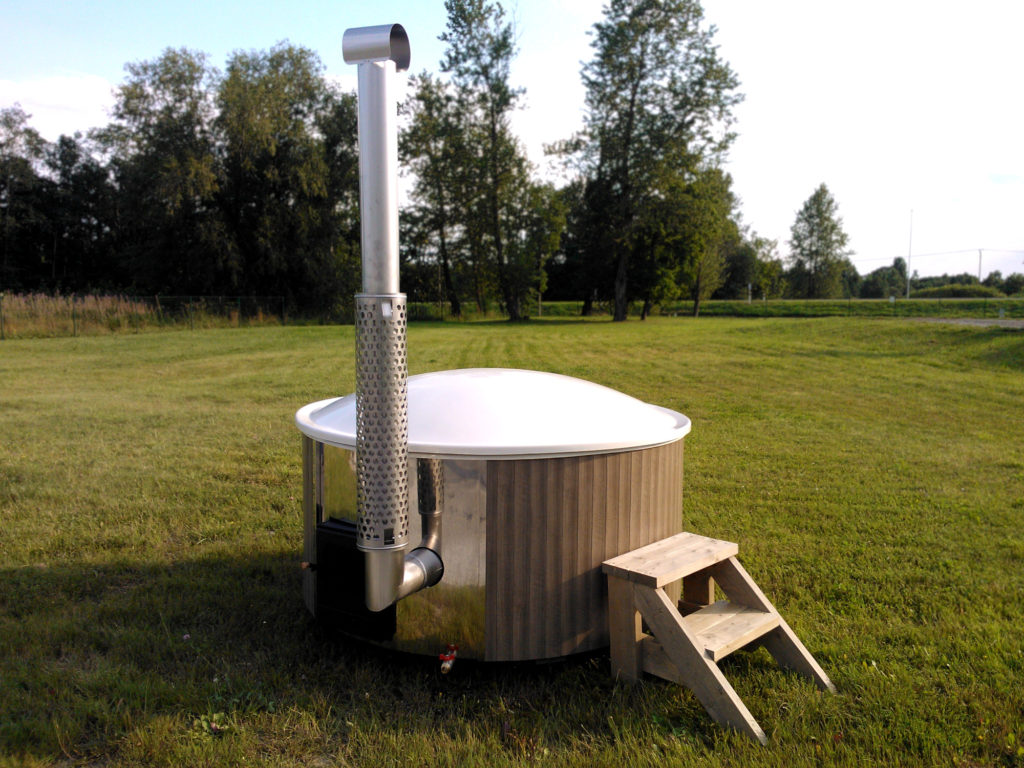 We manufacture hot tubs with an integrated oven, the interior of which is made of easy-care fiberglass and recyclable plastic in external finishing, so to speak, a green product. The hot tub is maintenance-free, for example, unlike many other wooden hot tub models, no side costs will be incurred in the future to maintain the side tables.